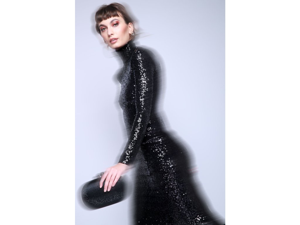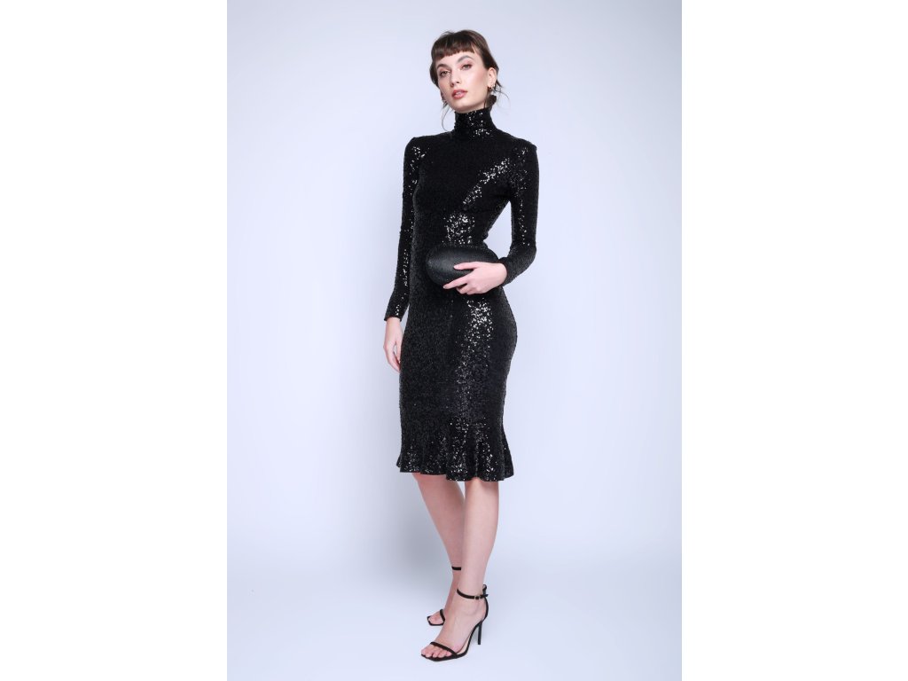 Černé flitrové šaty se stojáčkem Norma Kamali