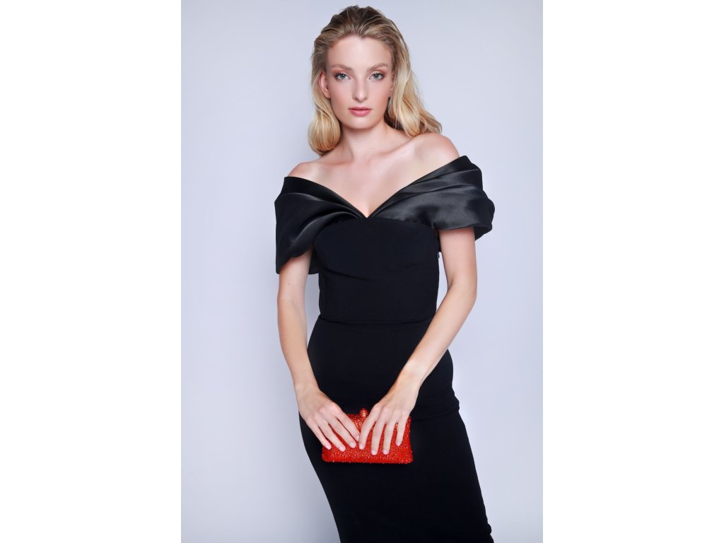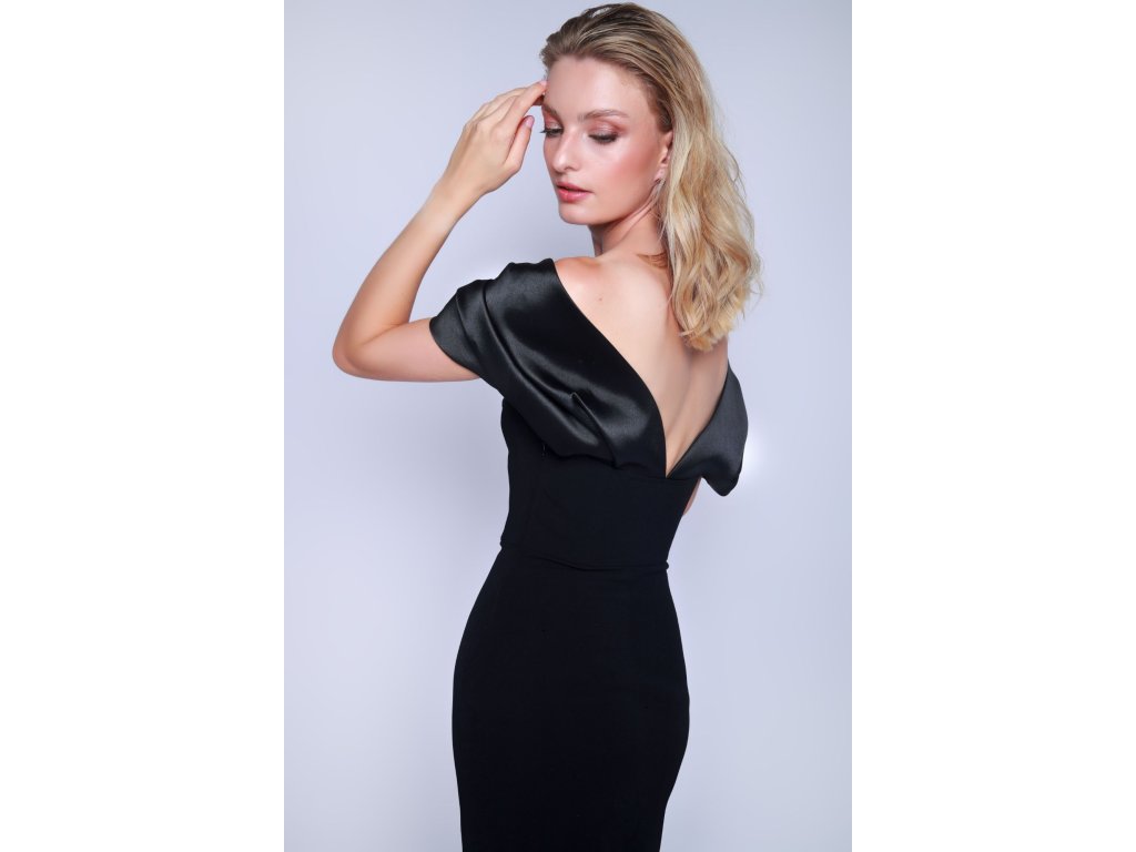 Černé šaty se spadlými rameny Solace London