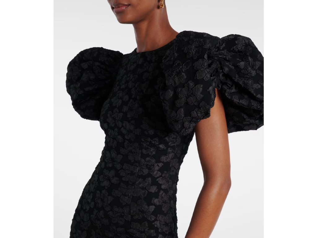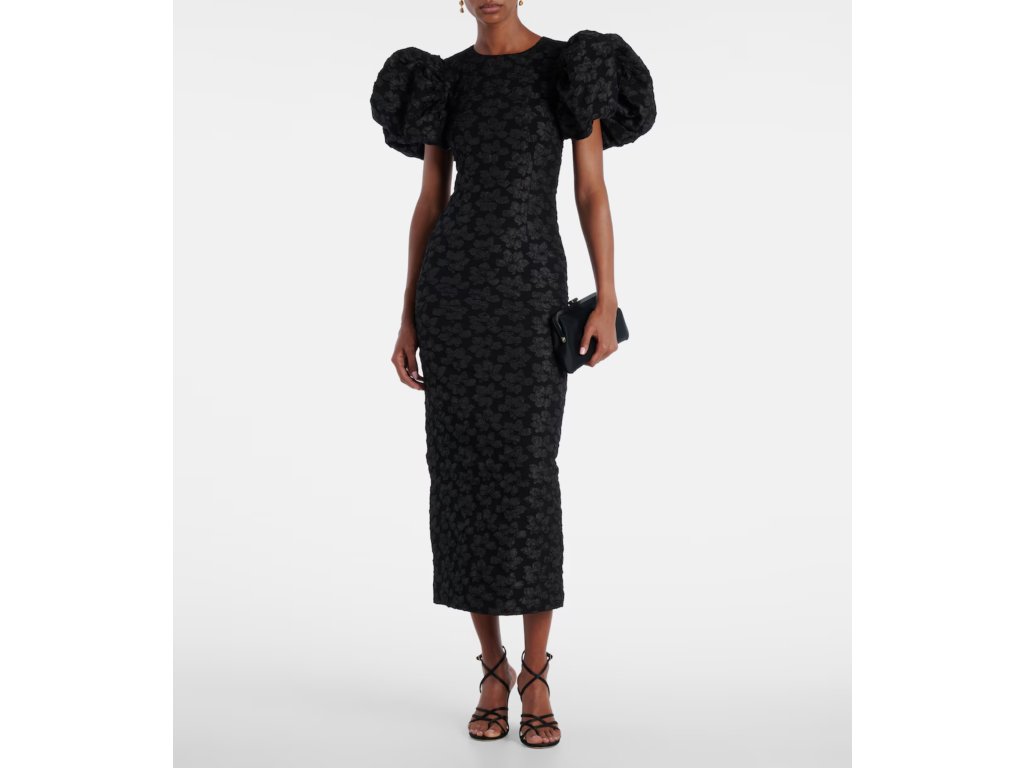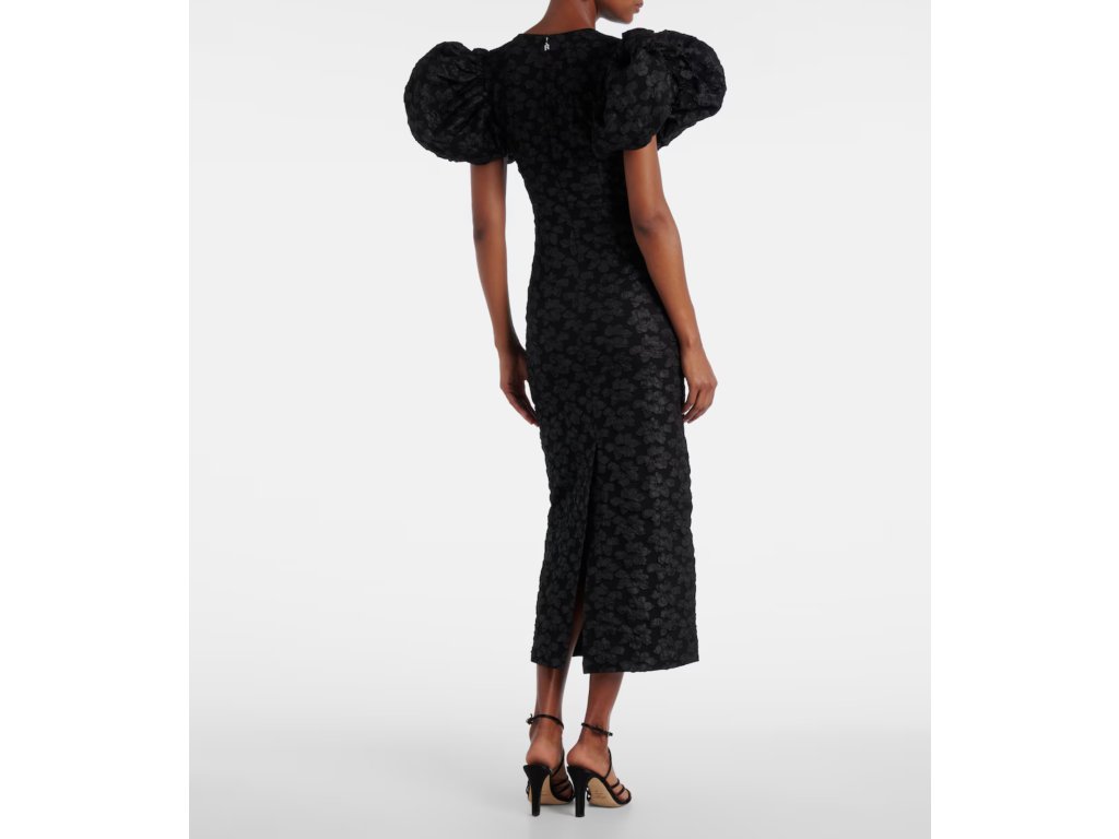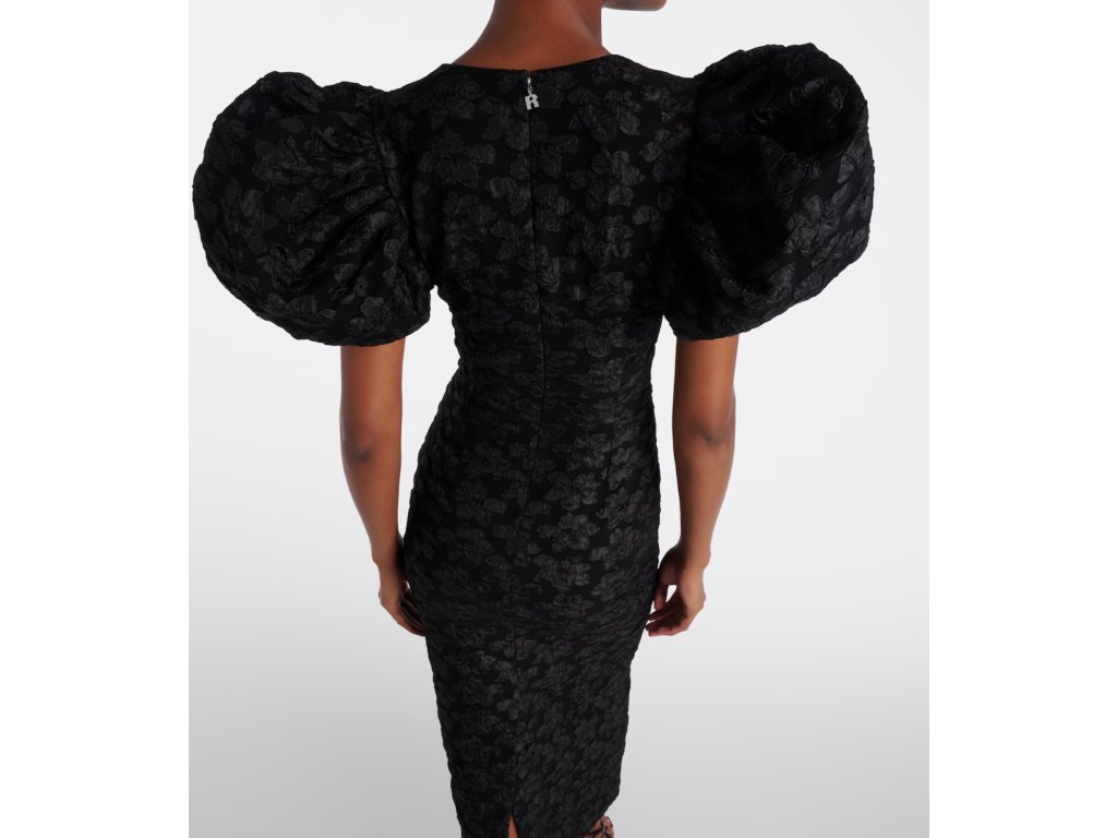 Černé midi šaty Rotate S/M s jemným vzorem a balónovými rukávy, ideální na koktejlové události.