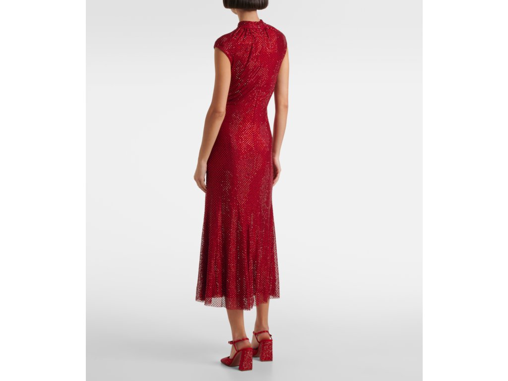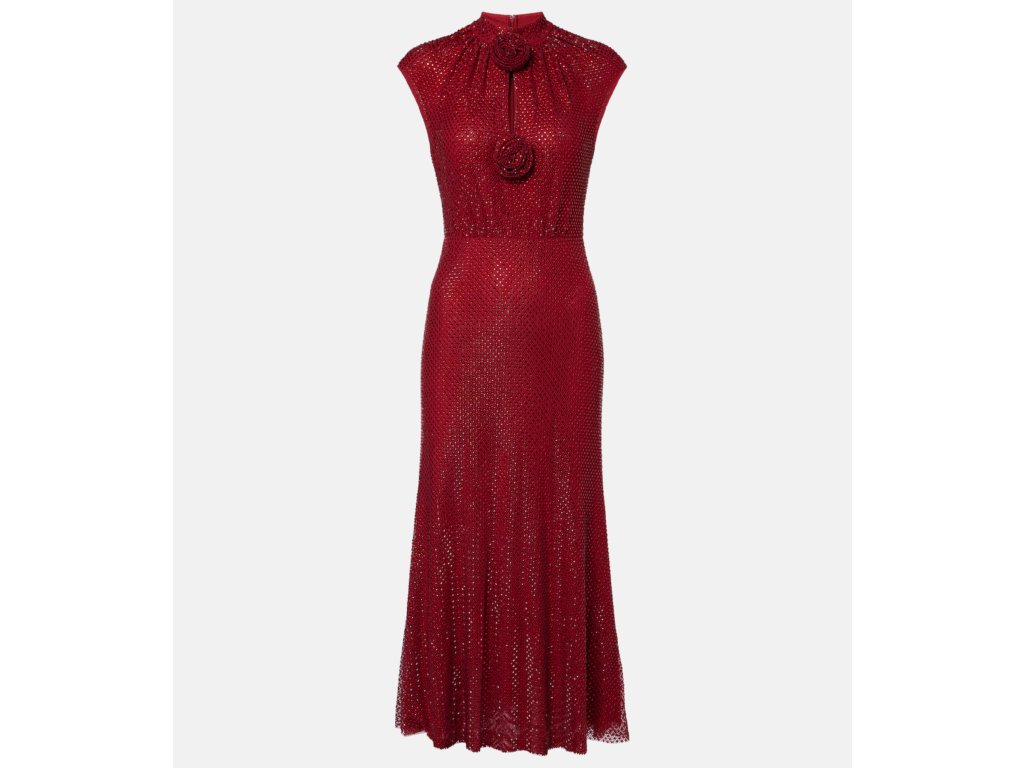 Červené šaty s kamínky a růžičkami Self Portrait