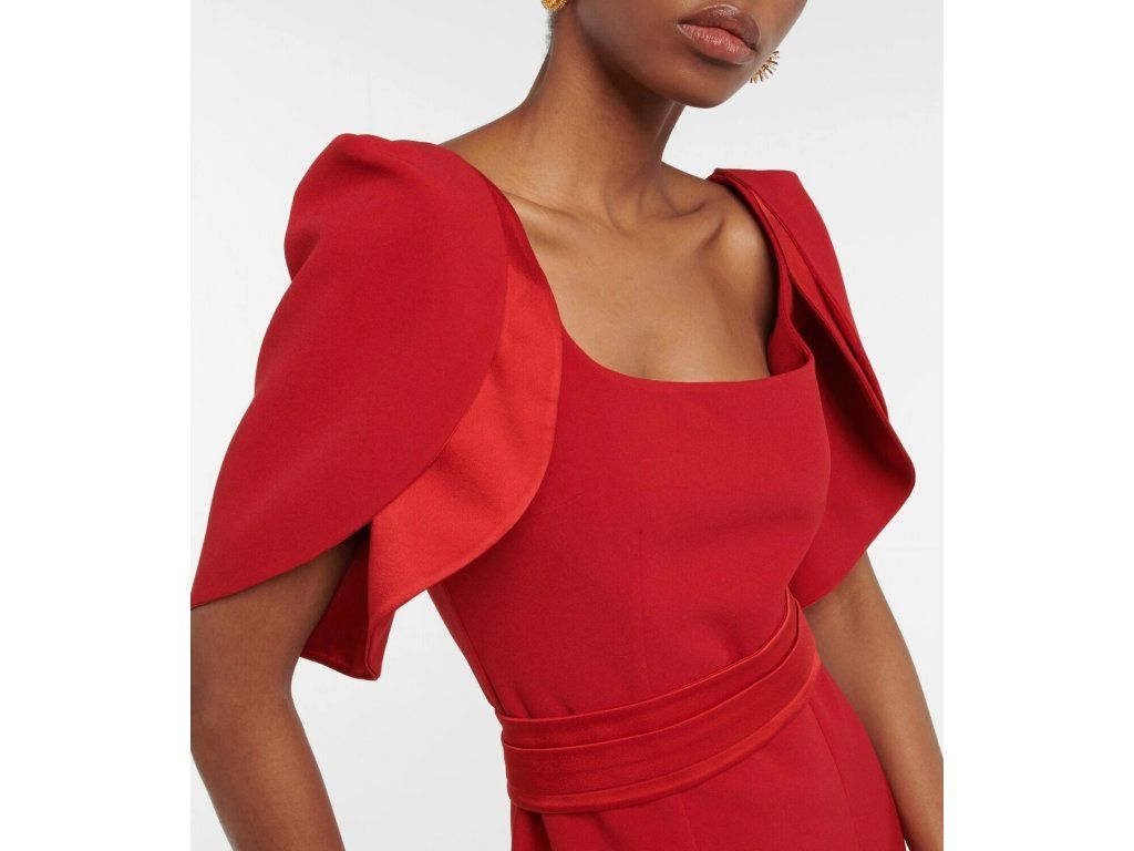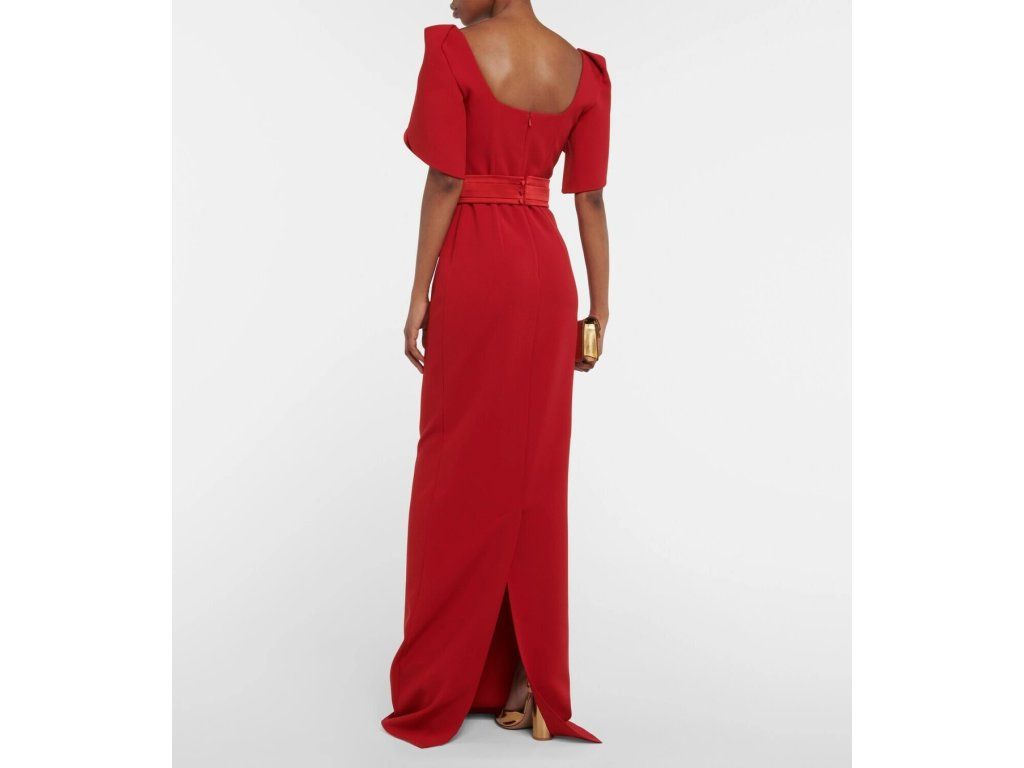 Tyto dlouhé červené šaty zaujmou elegantním, přiléhavým střihem, který krásně zvýrazňuje postavu. Hranatý výstřih působí moderně a vkusně, zatímco výrazné tvarované rukávy dodávají modelu jedinečný a lehce dramatický vzhled. Zvýrazněný pas podtrhuje siluetu a celek působí luxusně, žensky a ideálně se hodí na slavnostní příležitosti.