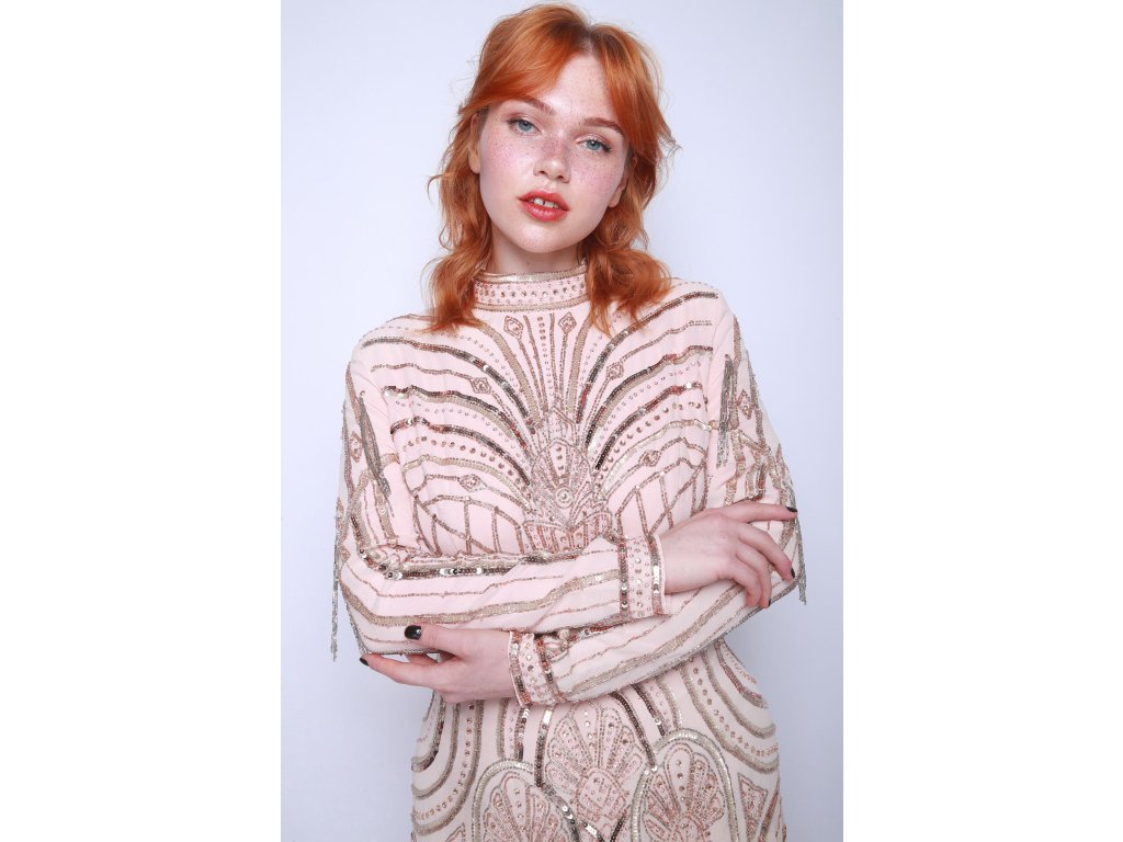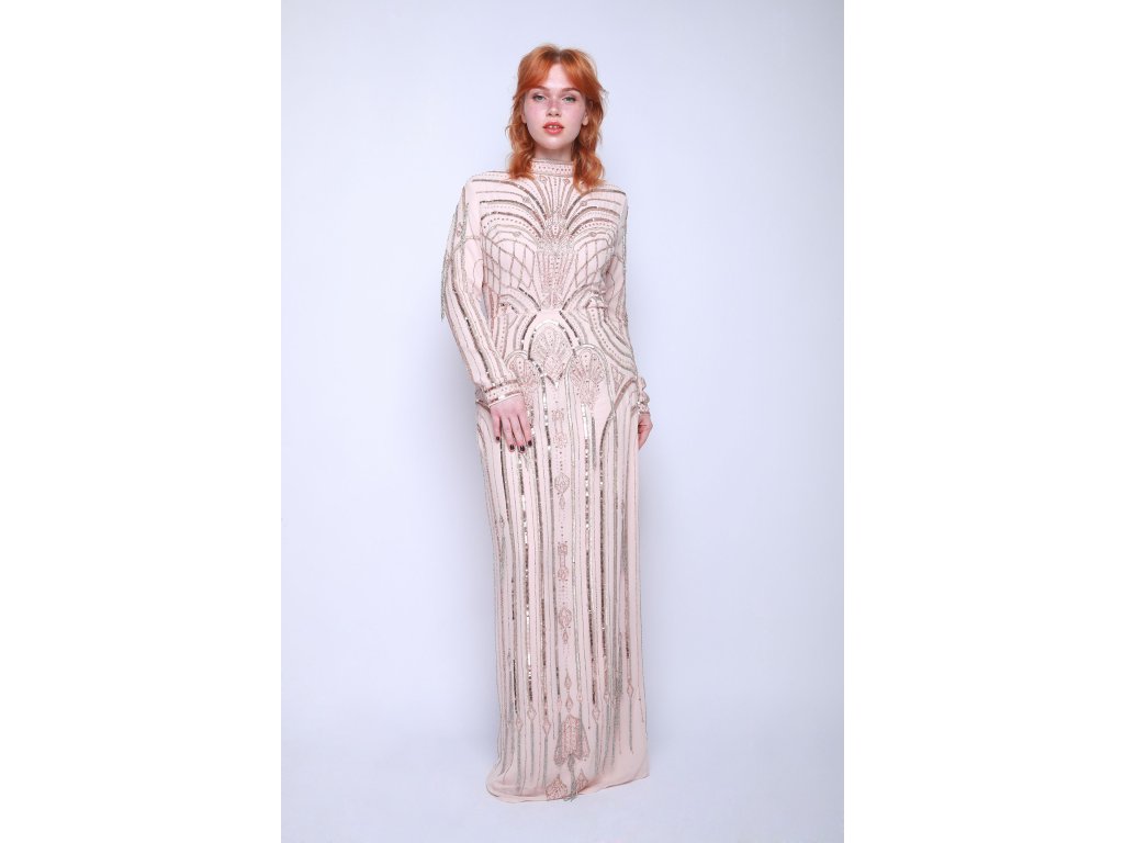 Dlouhé béžové šaty s flitry The Dress