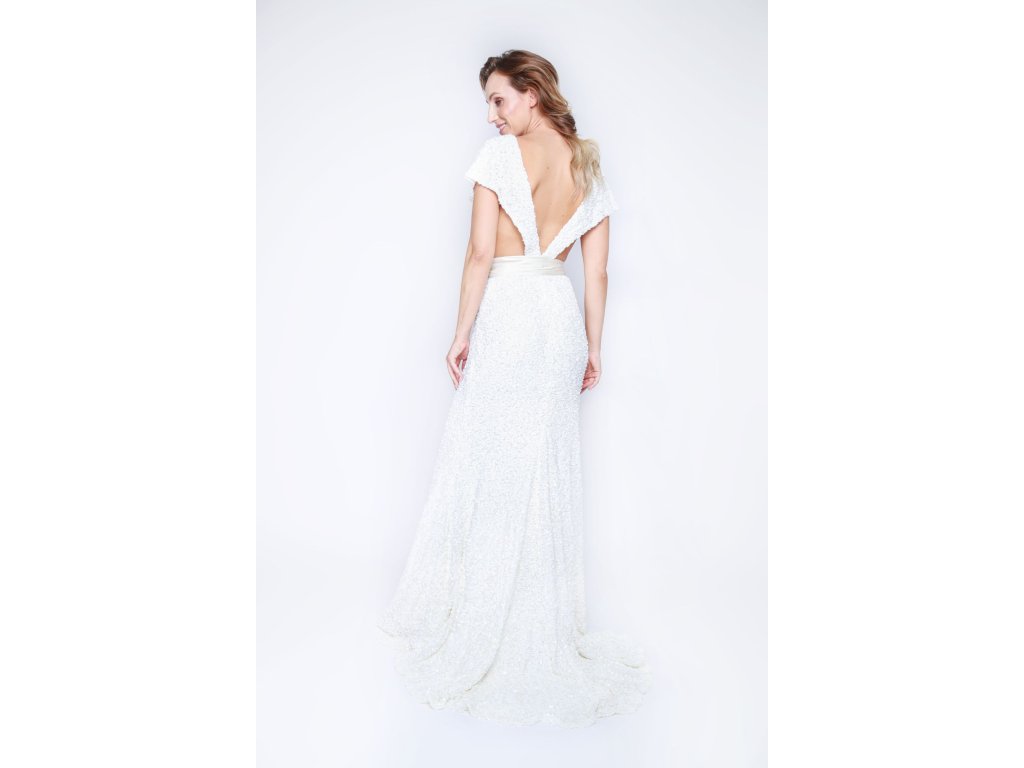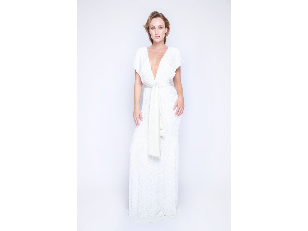 Dlouhé bílé flitrové šaty s hlubokým výstřihem Rotate
