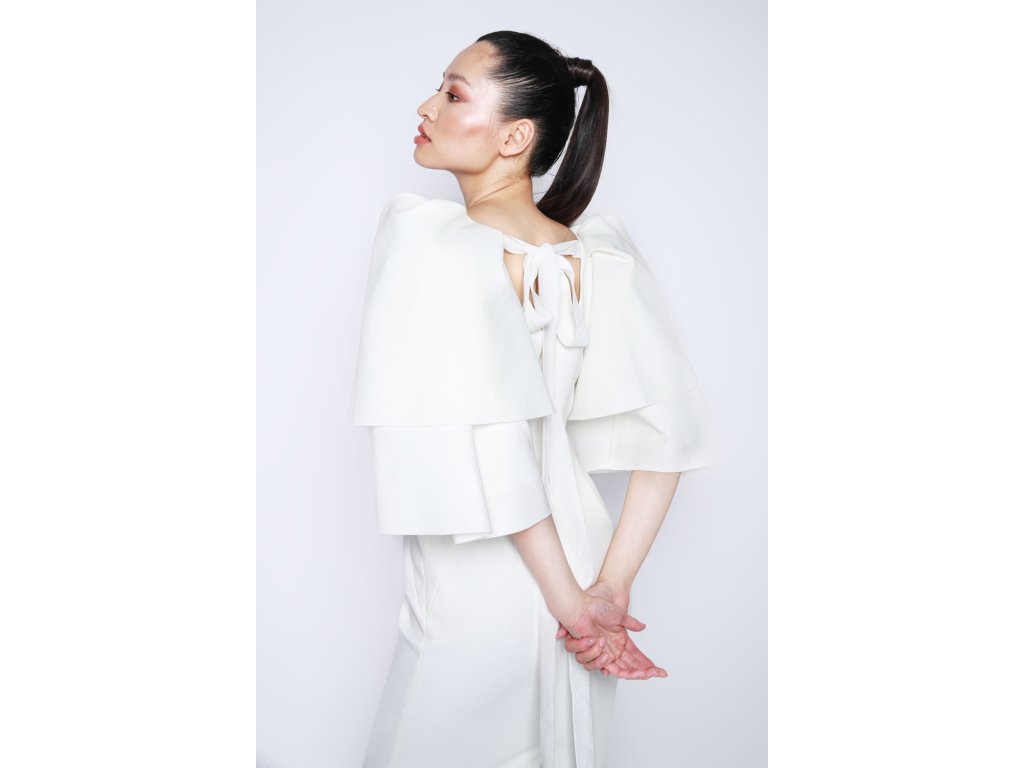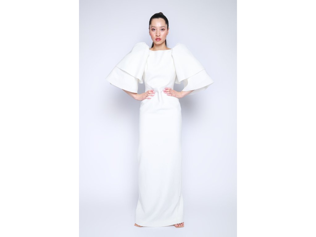 Dlouhé bílé šaty s objemnými rukávy Roksanda