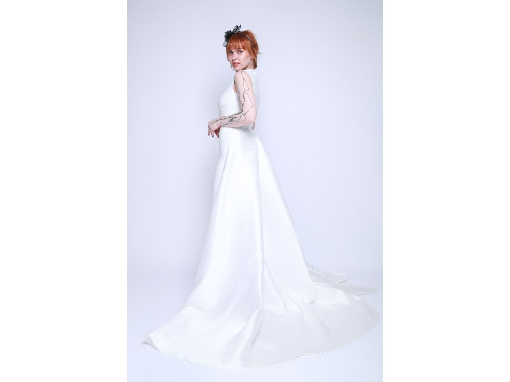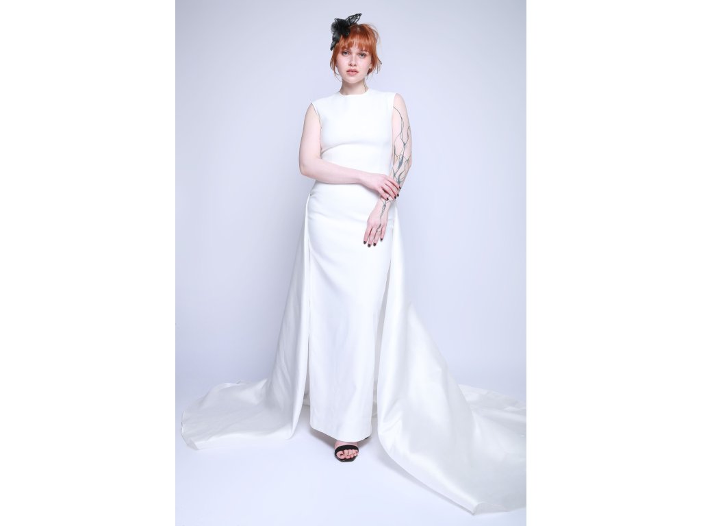 Tyto bílé šaty od značky Solace London, dostupné ve velikosti S/M, jsou ztělesněním moderní, minimalistické elegance. Jejich přiléhavá silueta s vysokým výstřihem dokonale zvýrazňuje postavu. Hlavním prvkem je však dramatická vlečka, která začíná u pasu a vytváří tak jedinečnou a sofistikovanou siluetu. Jsou ideální volbou pro formální akce, večírky, svatby, nebo plesy, kde chcete zazářit bez zbytečných detailů.