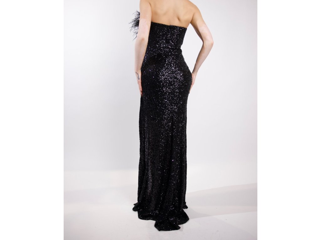 Dlouhé černé flitrové šaty s peřím HoneyB by Biasiol