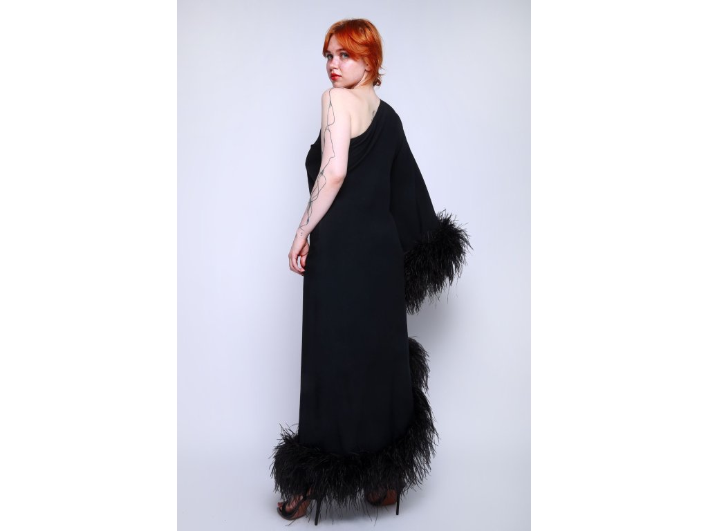 Dlouhé černé rafinované šaty s peříčky Taller Marmo