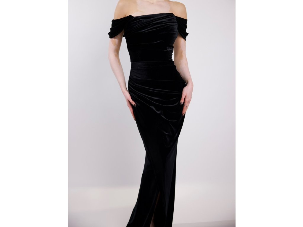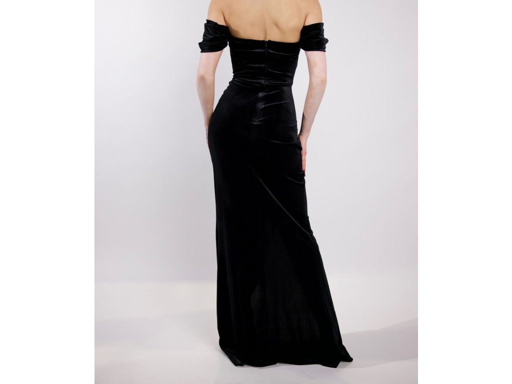 Dlouhé černé sametové šaty HoneyB by Biasiol M/L – elegantní Black tie model se spadlými rameny.
