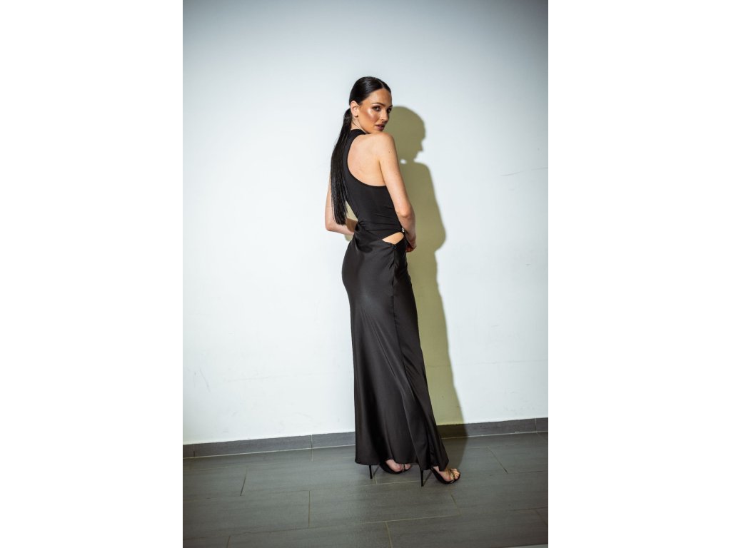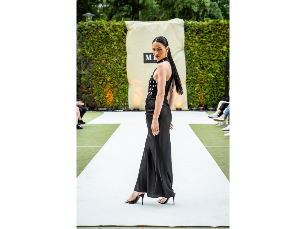 Dlouhé černé šaty s kamínky Meji