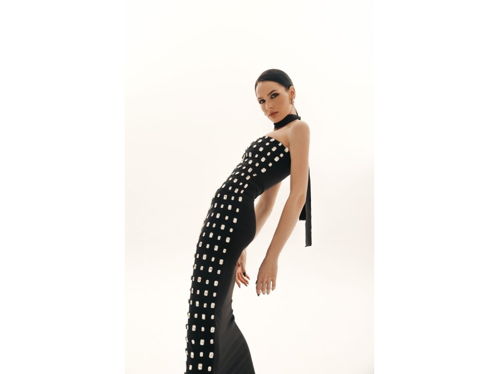 Dlouhé černé šaty Meji s kamínky ve velikosti S/M jsou ztělesněním sofistikovanosti a glamour stylu. Přiléhavý střih podtrhuje siluetu, zatímco zdobení kamínky dodává šatům výrazný třpyt a originalitu. Kombinace elegantní černé barvy a luxusních detailů je ideální pro slavnostní večery a formální události s dress codem black tie. Tyto šaty vám zajistí sebevědomý a nezapomenutelný vzhled.