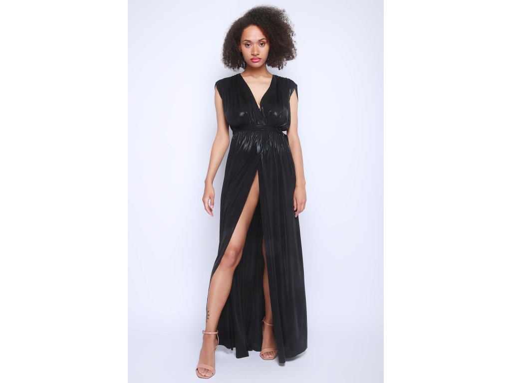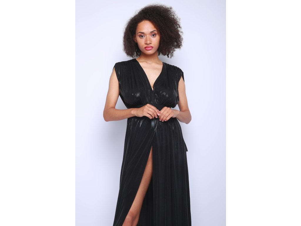 Dlouhé černé šaty s velkým rozparkem Norma Kamali