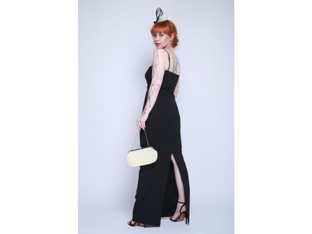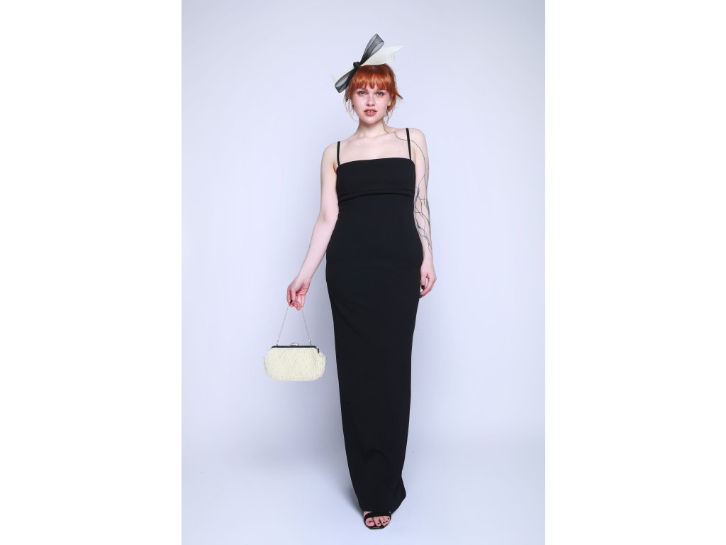 Elegantní černé maxi šaty Solace London ve velikosti M/L. Jednoduchý střih se špagetovými ramínky pro formální příležitosti Black tie.