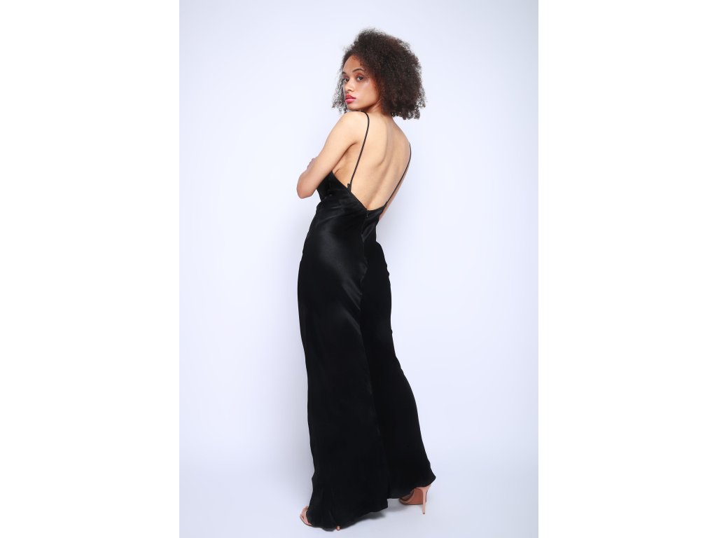 Černé maxi šaty Lovers and friends, velikost XXS/XS, s jemnými ramínky a vodopádovým dekoltem, ideální pro sofistikované večerní události.