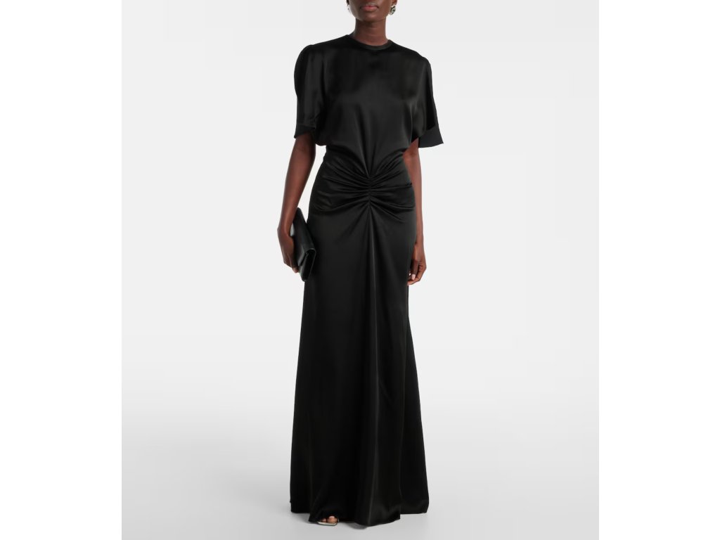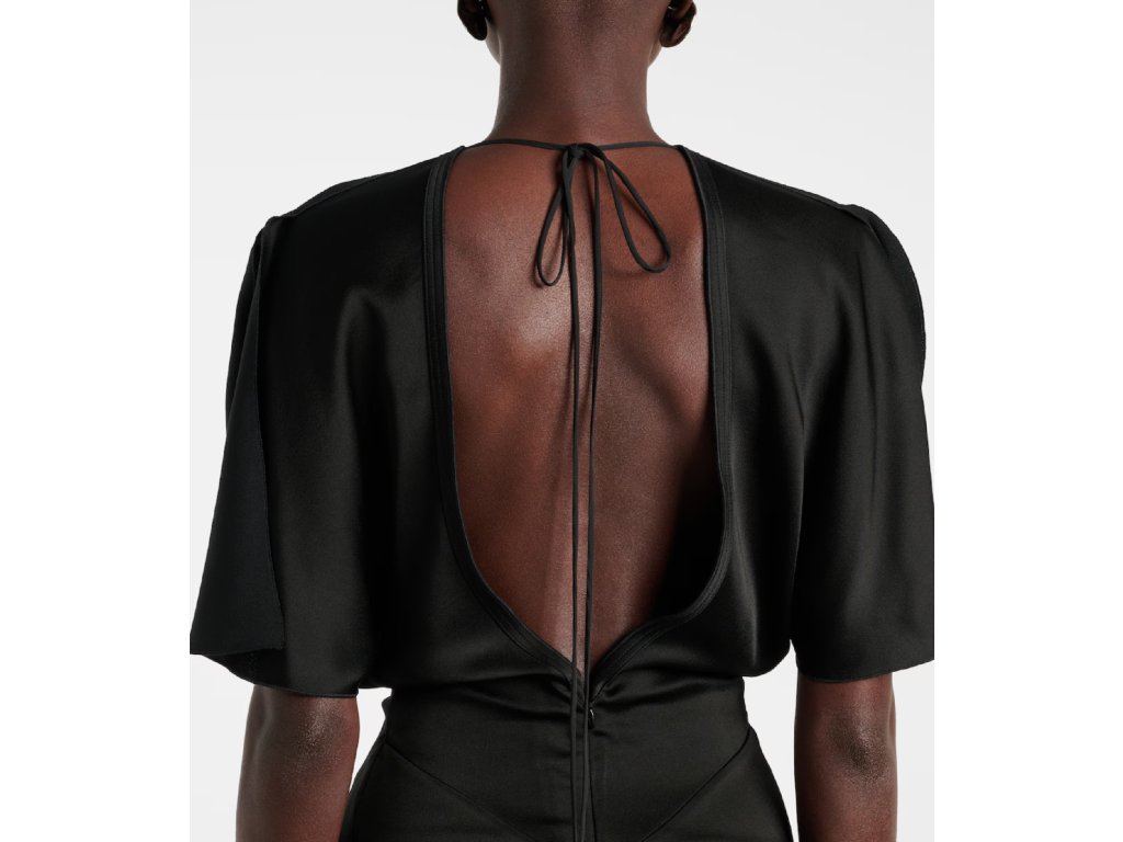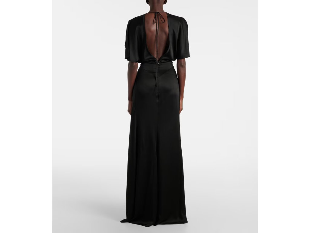Dlouhé černé splývavé šaty s holými zády Victoria Beckham