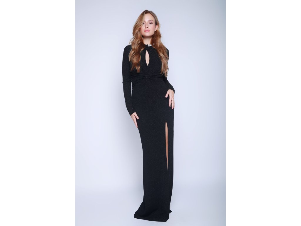 Dlouhé černé třpytivé šaty s ozdobnou aplikaci kolem krku Rebecca Vallance