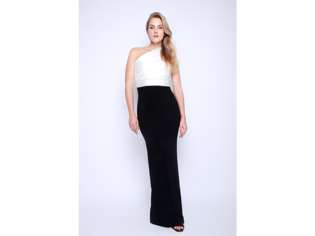 Dlouhé černobílé šaty na jedno rameno Solace London