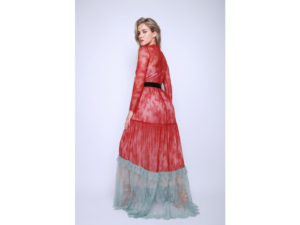 Dlouhé červené krajkové šaty Philosophy