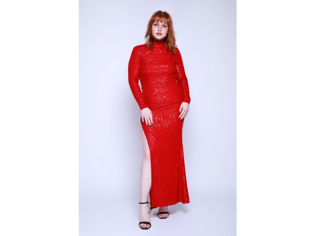 Dlouhé červené flitrové šaty NBD