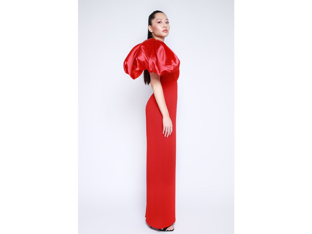 Dlouhé červené šaty s balónovým rukávem Solace London