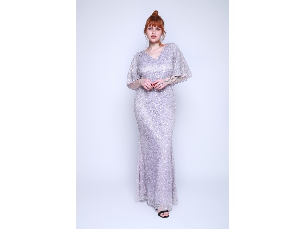 Dlouhé fialové flitrované šaty The Dress ve velikosti 2XL/3XL. Maxi střih s elegantním třpytem ideální pro slavnostní akce.