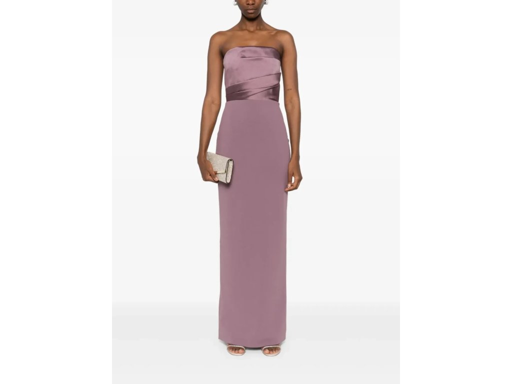 Dlouhé fialové pouzdrové maxi šaty Solace London ve velikosti M/L. Elegantní bezramínkový střih s páskem, ideální pro Black tie akce.