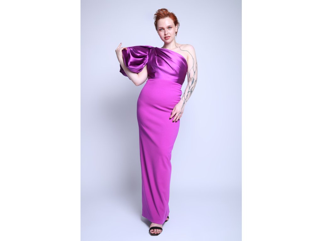 Dlouhé fialové maxi šaty Solace London ve velikosti M/L. Elegantní střih na jedno rameno, ideální pro večerní akce s dress codem Black tie.