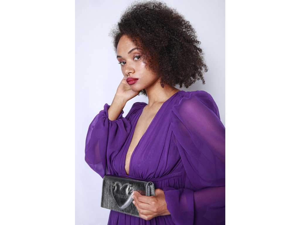 Dlouhé fialové maxi šaty Pinko, velikost S/M – elegantní volba pro Black tie večery.