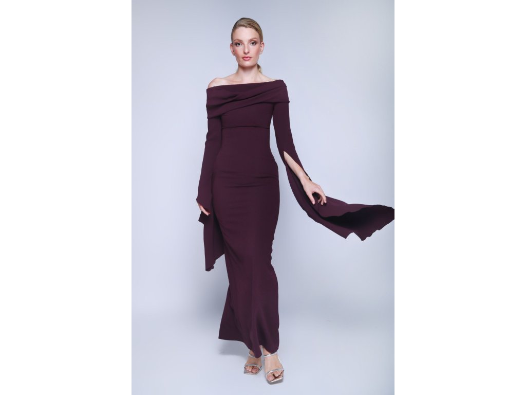 Dlouhé fialové šaty s maxi rukávy Solace London
