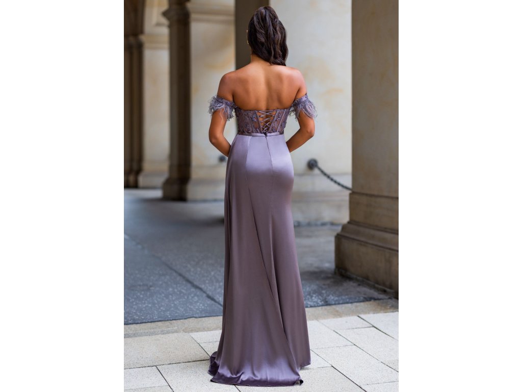 Dlouhé fialové šaty s peříčky Christian Koehlert