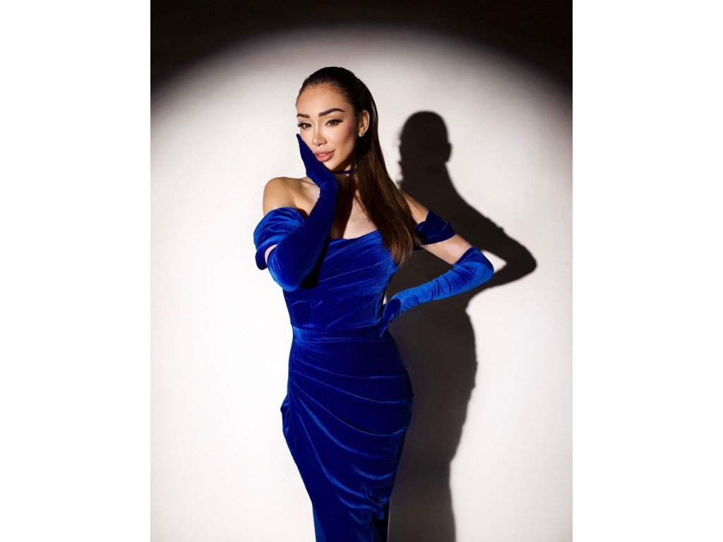 Dlouhé modré sametové šaty HoneyB by Biasiol