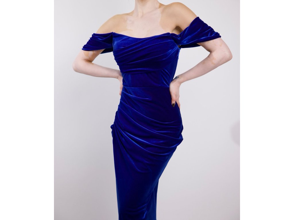 Dlouhé modré sametové šaty HoneyB by Biasiol ve velikostech XS/S a L/XL působí královsky díky sytému odstínu modré a bohatému sametovému materiálu. Elegantní střih se spadlými rameny zdůrazňuje ženskost, zatímco maxi délka dodává šatům noblesní charakter. Tento model je ideální volbou pro večerní galavečery, plesy či jiné prestižní akce s dress codem Black tie, kde chcete zazářit.