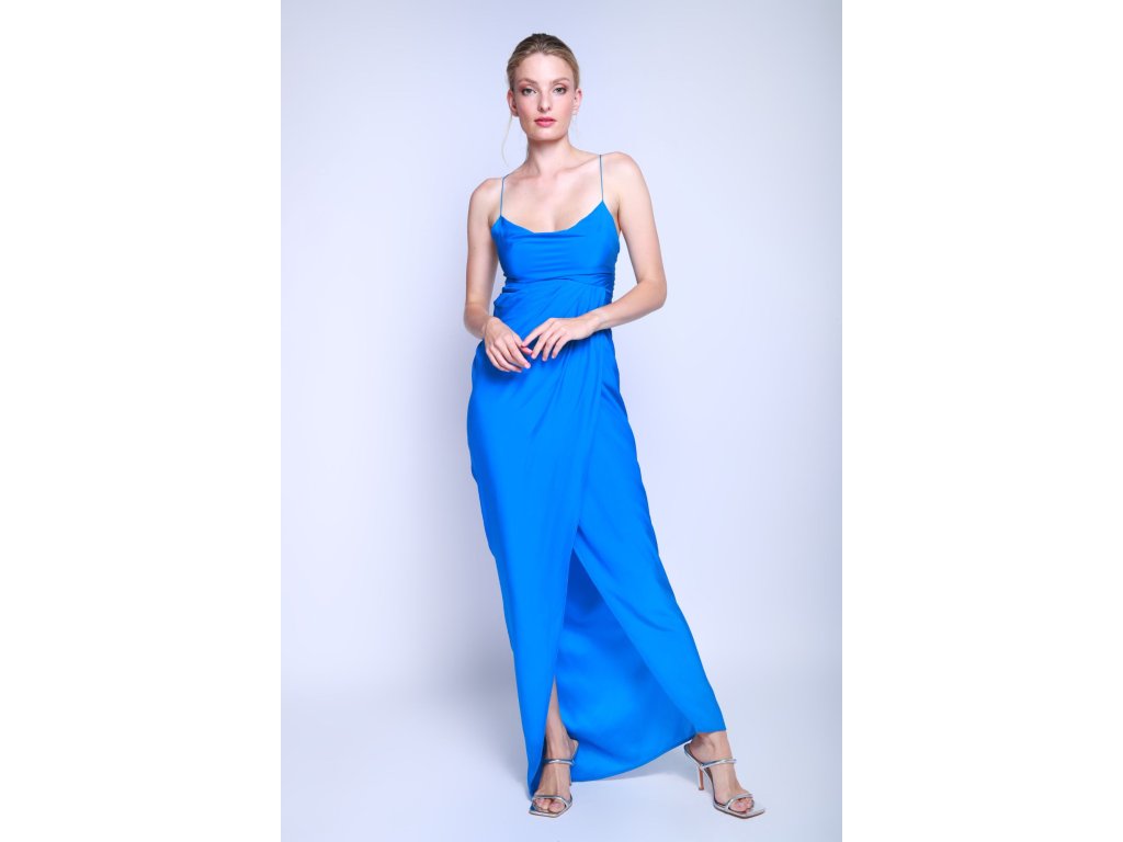 Dlouhé modré splývavé šaty Gauge 81 ve velikosti XS/S zaujmou svou jednoduchostí a jemnou elegancí. Tenká ramínka a volně splývavý střih působí lehce a uvolněně, zatímco výrazná modrá barva dodává šatům moderní šmrnc. Maxi délka opticky prodlouží postavu a vytváří sofistikovaný siluetový efekt. Tyto šaty jsou ideální volbou pro casual dress code, letní večery i příležitosti, kdy chcete zazářit s lehkostí.