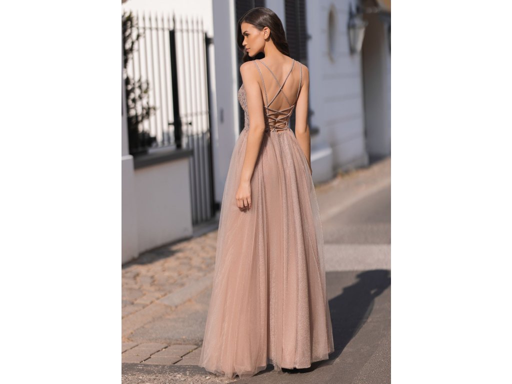 Dlouhé pudrové plesové šaty Christian Koehlert ve velikosti M/L jsou dokonalým spojením elegance a romantiky. Lesklý živůtek s jemným korzetovým střihem krásně zvýrazní dekolt, zatímco objemná sukně z lehkého tylu dodává šatům pohádkový nádech. Pudrový odstín působí něžně a sofistikovaně, ideální pro plesy, galavečery nebo slavnostní příležitosti s dress codem black tie. Tyto šaty jsou stvořené pro ženy, které chtějí působit královsky a stát se středem pozornosti večera.