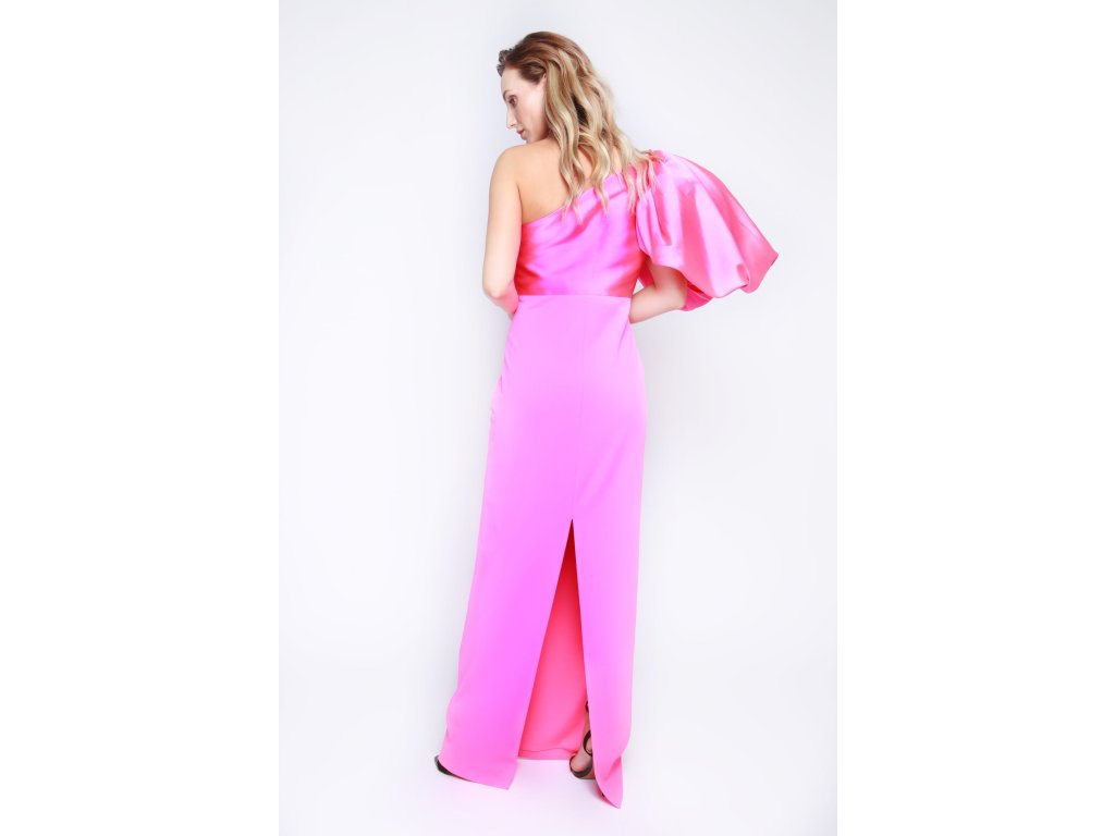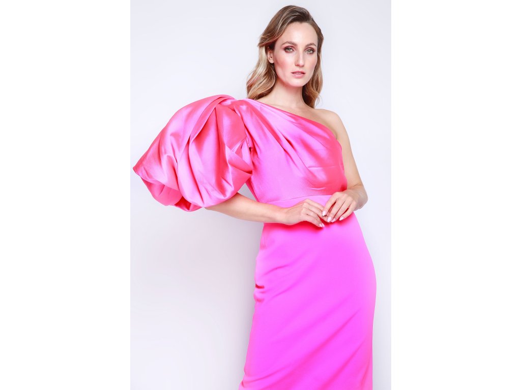 Dlouhé růžové šaty s velkým balónovým rukávem Solace London