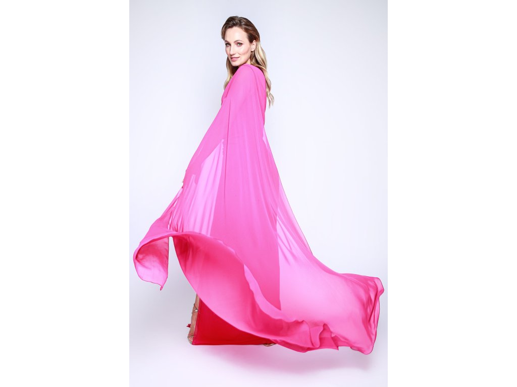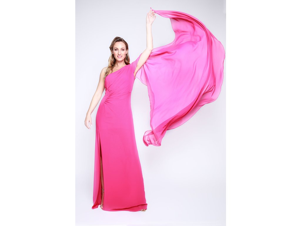 Dlouhé růžové šaty Blanca Vita ve velikosti S/M jsou symbolem elegance a vytříbeného stylu. Jejich jedinečný střih s jedním odhaleným ramenem a dlouhým vzdušným rukávem působí sofistikovaně a originálně. Výrazný rozparek a jemně splývavý materiál dodávají modelu odvážný, ale stále noblesní vzhled. Tyto šaty jsou perfektní volbou pro White tie události – plesy, galavečery či luxusní svatby, kde zaručeně zazáříte.