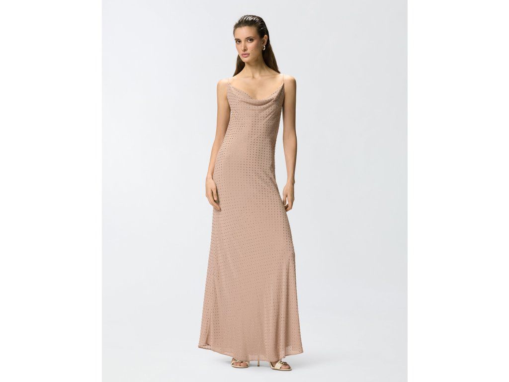 Dlouhé elegantní šaty značky Pinko v jemném champagne / nude odstínu představují sofistikovaný a ženský model vhodný pro společenské i večerní příležitosti. Velikosti XS a M.