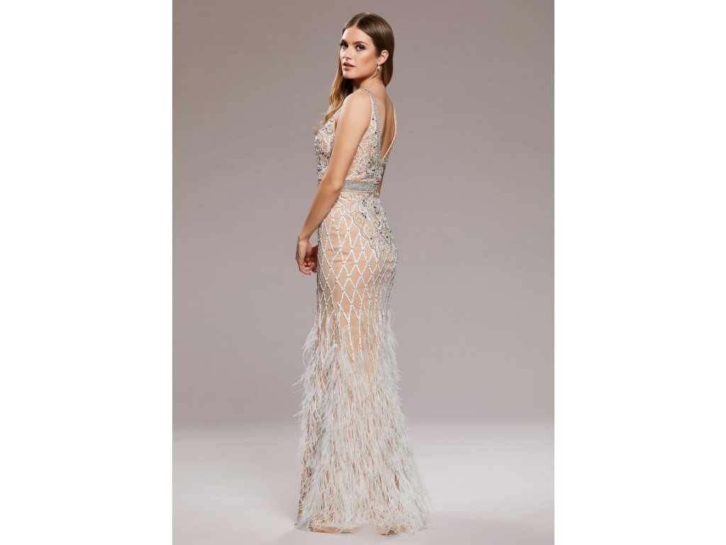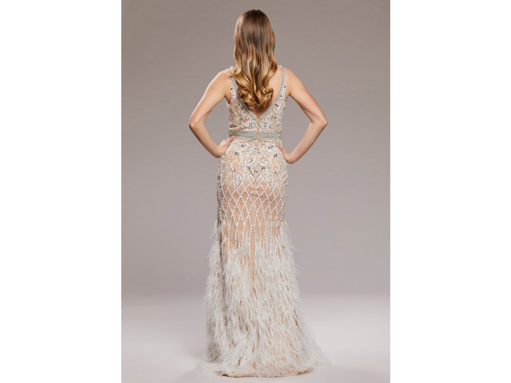 Dlouhé šaty s rozparkem a peříčky Christian Koehlert