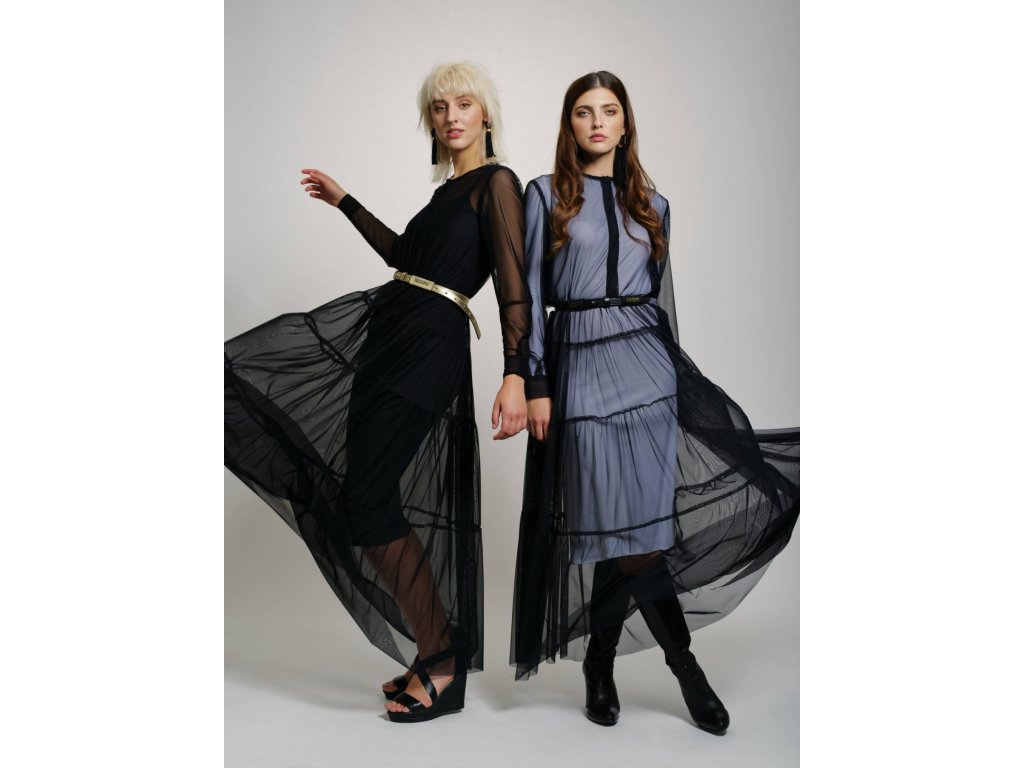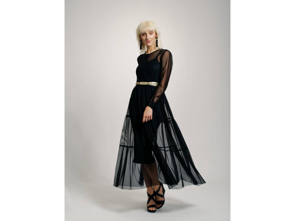 Černé průsvitné maxi šaty Talabaya M/L – lehkost, elegance a moderní look ideální pro cocktail večery.