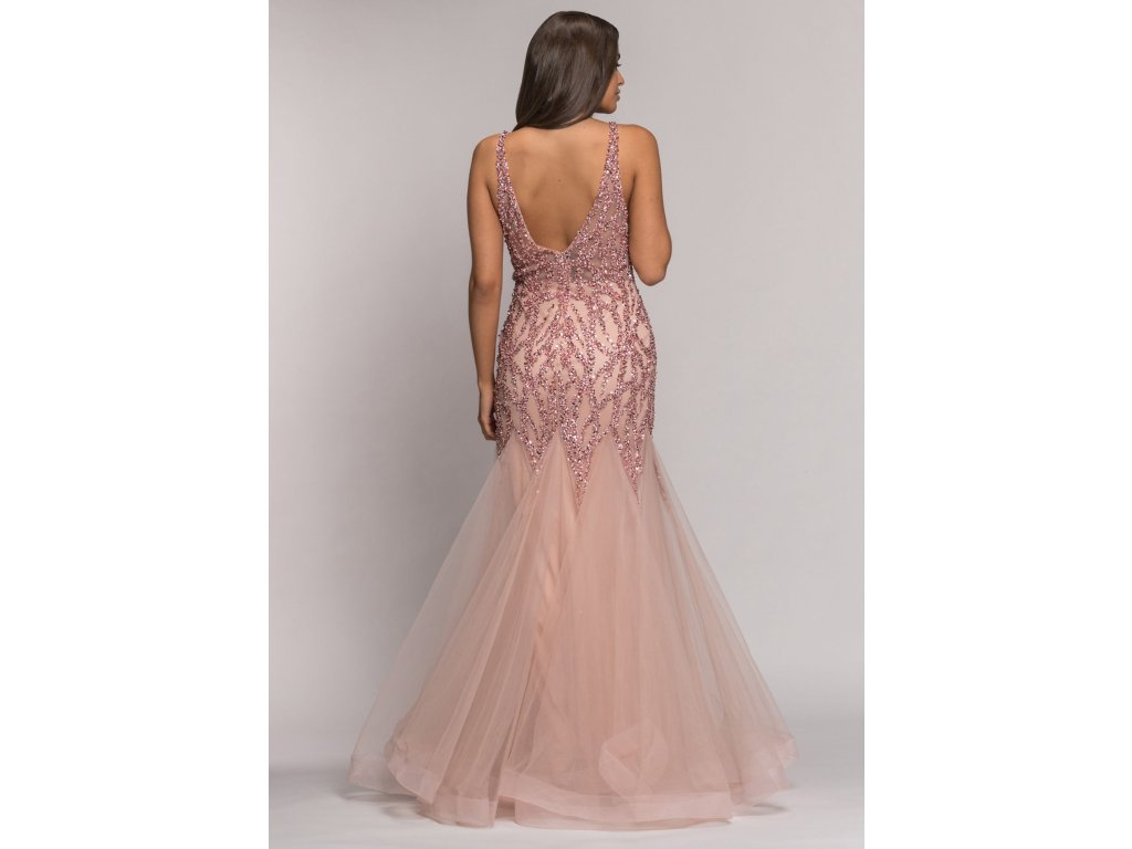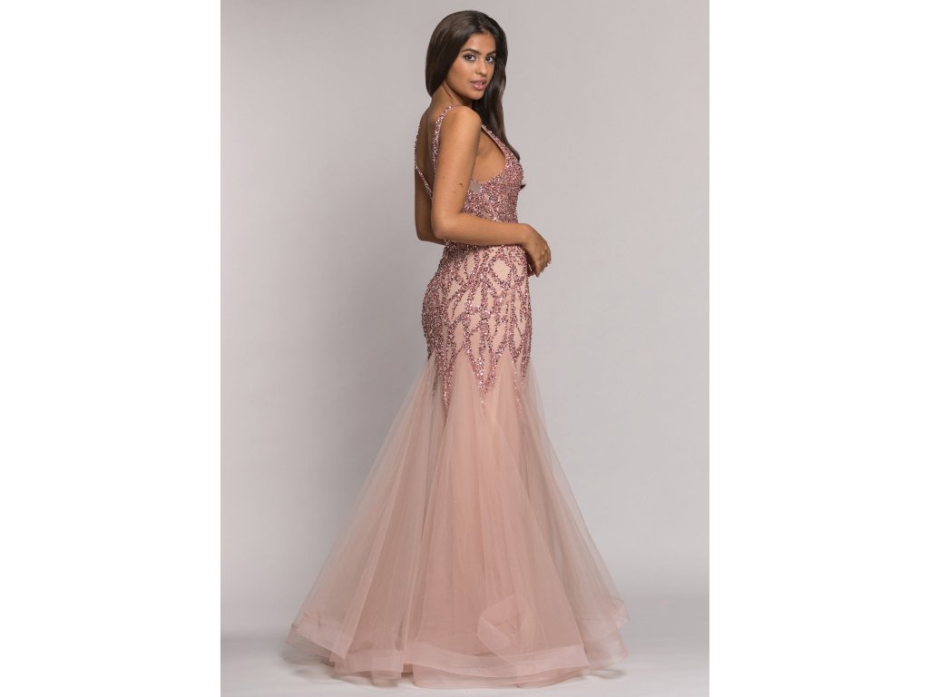 Dlouhé společenské pudrové šaty s flitry Christian Koehlert
