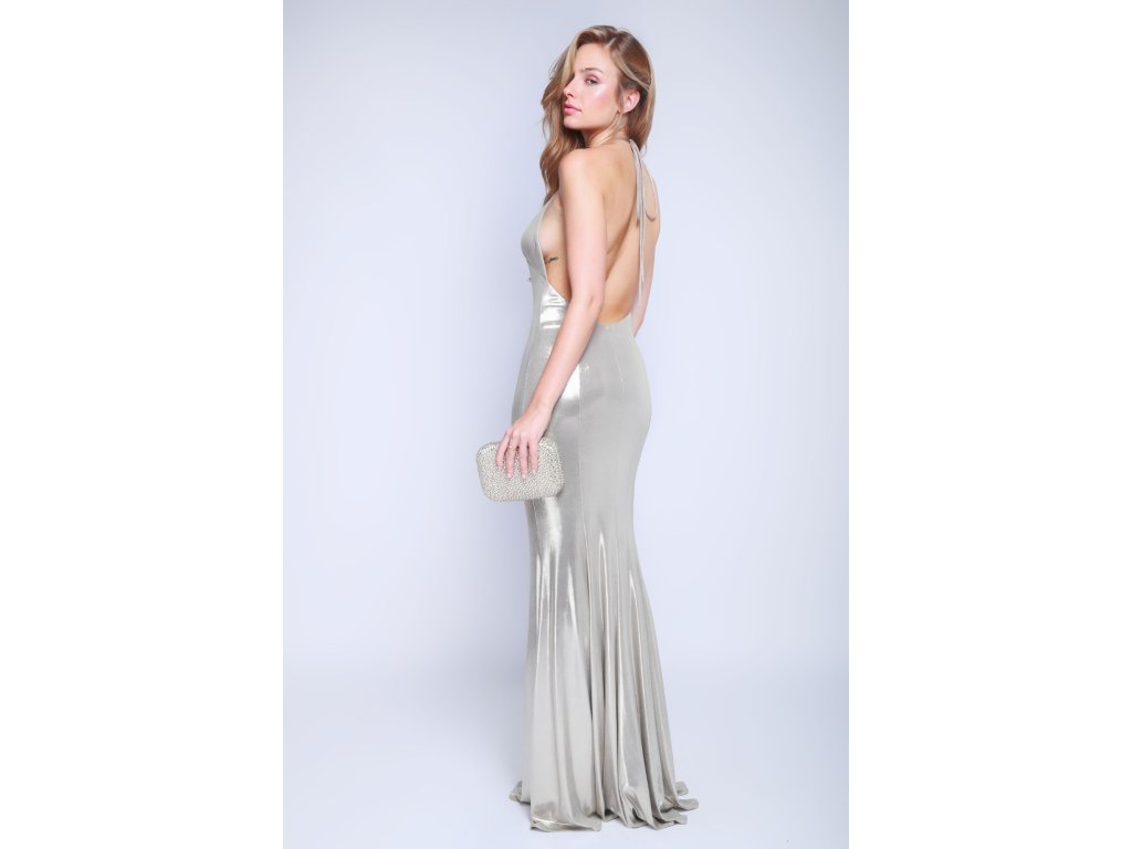Stříbrné splývavé maxi šaty Pinko, velikost XS/S – třpytivá elegance pro cocktail look.