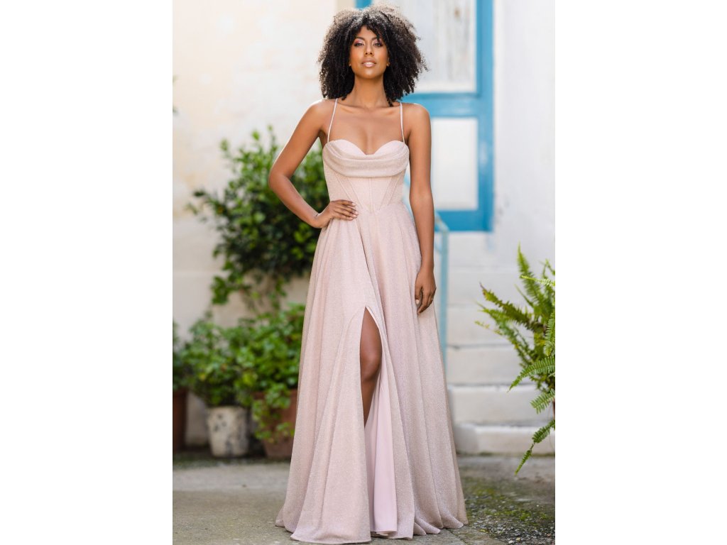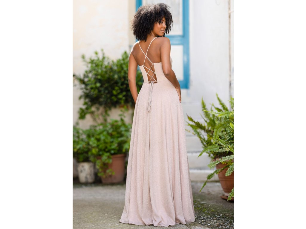 Dlouhé světle růžové třpytivé šaty Christian Koehlert