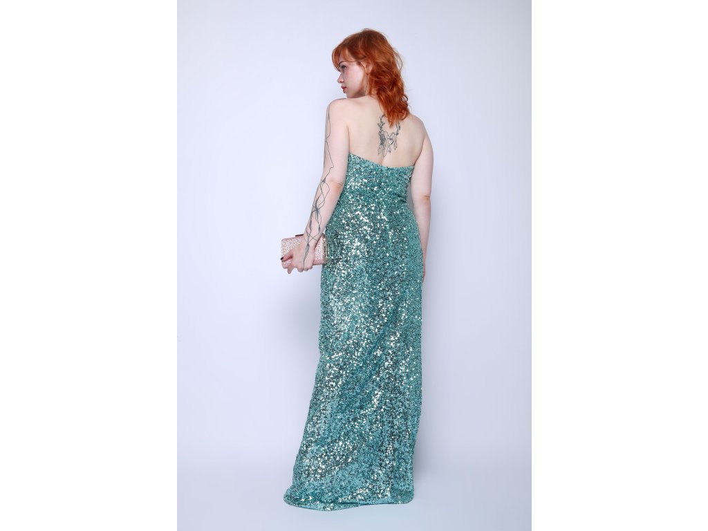 Dlouhé zelené flitrované šaty Siedrés L/XL – oslnivý model bez ramínek pro kreativní black tie události.