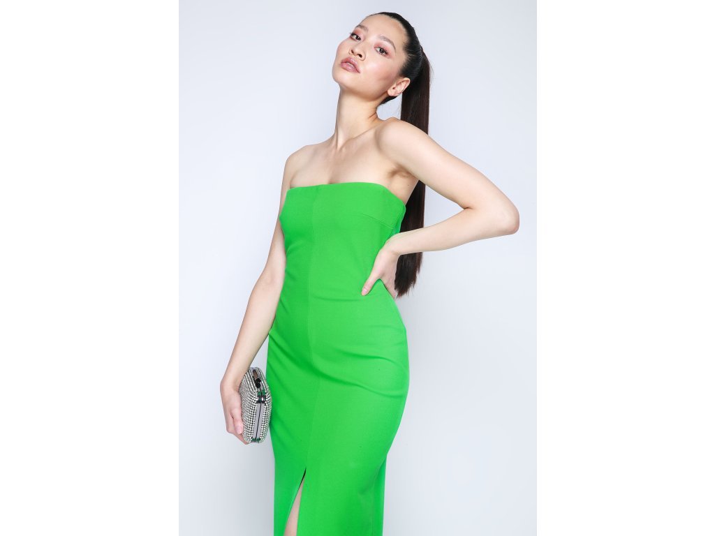 Dlouhé zelené maxi šaty Solace London ve velikosti M/L – minimalistický model bez ramínek pro elegantní black tie události.