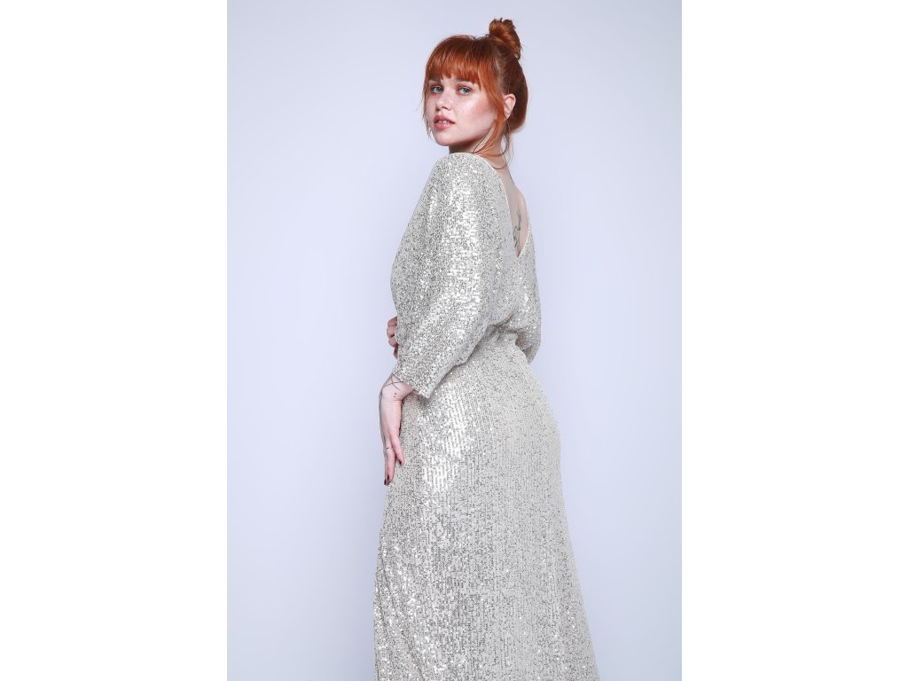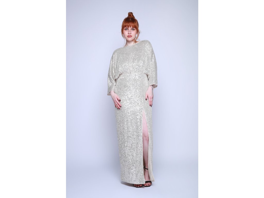 Dlouhé zlaté flitrované šaty The Dress ve velikosti 2XL/3XL. Elegantní maxi střih s rozparkem a třpytem je ideální pro white tie události a plesy.