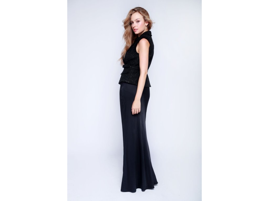 Tento dlouhý černý set Self Portrait ve velikosti S/M spojuje eleganci a moderní minimalismus. Kalhotová maxi silueta doplněná o rafinovanou vestičku s hlubokým výstřihem působí sebevědomě, profesionálně a zároveň velmi ženský. Černá barva podtrhuje univerzálnost a nadčasový charakter. Ideální outfit pro business formal příležitosti, večerní recepce i slavnostní pracovní akce, kde chcete působit stylově a reprezentativně.