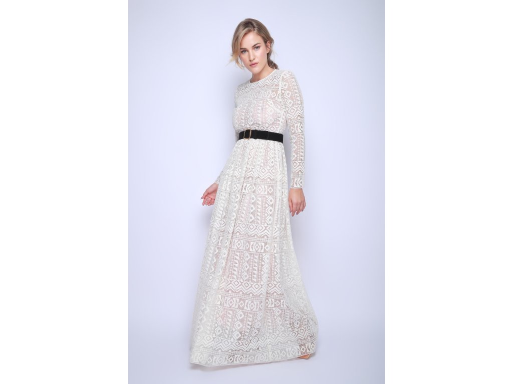 Tyto bílé šaty od značky Philosophy, dostupné ve velikosti XS/S, jsou ztělesněním nadčasové elegance. Jsou ušité z jemné krajky, mají vysoký výstřih a dlouhé rukávy, které dodávají šatům noblesní vzhled. Kontrastní černý pásek elegantně zvýrazňuje pas a dává celému modelu moderní a sofistikovaný nádech. Jsou ideální volbou pro svatební hosty, letní večírky nebo jiné společenské události, kde chcete působit romanticky a stylově.