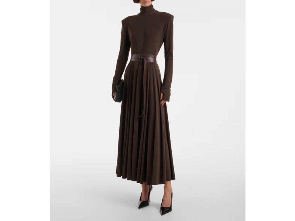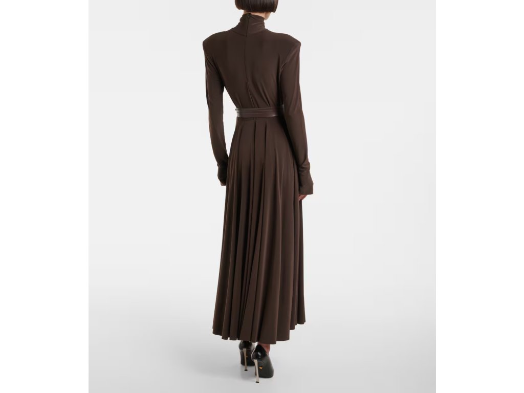 Hnědé midi šaty Norma Kamali s páskem ve velikosti XS/S pro business formal příležitosti.