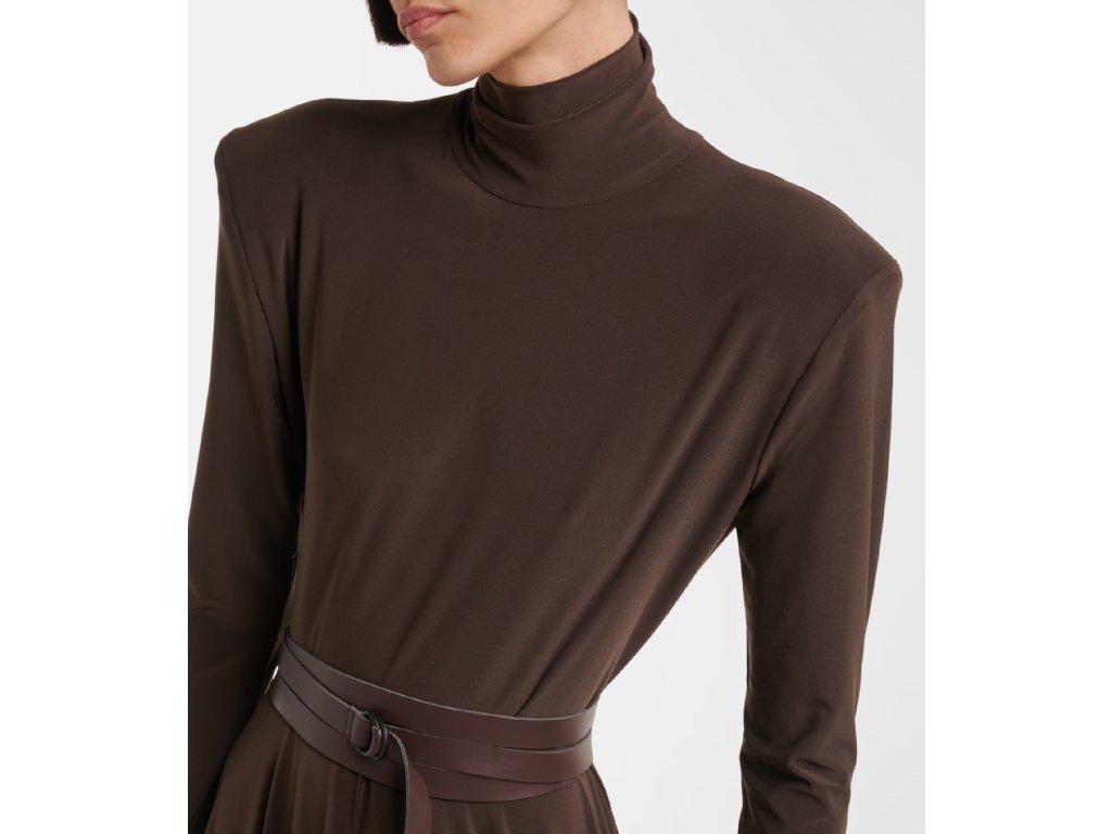 Hnědé splývavé šaty s opaskem Norma Kamali