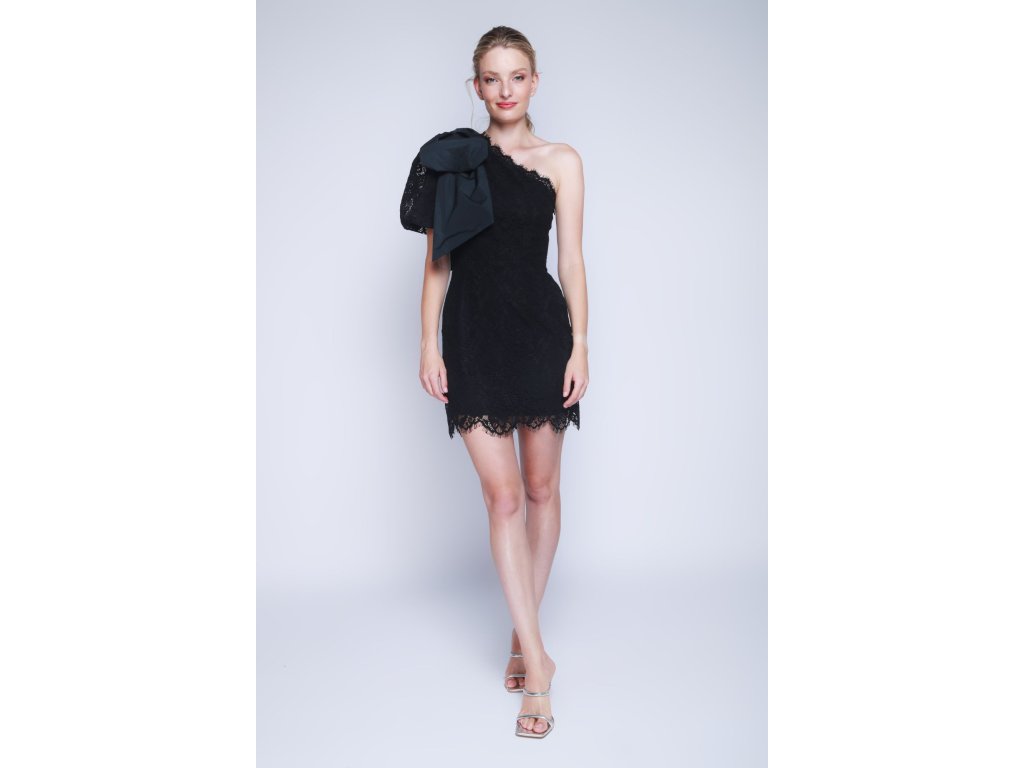 Krátké černé krajkové šaty s mašlí Rebecca Vallance
