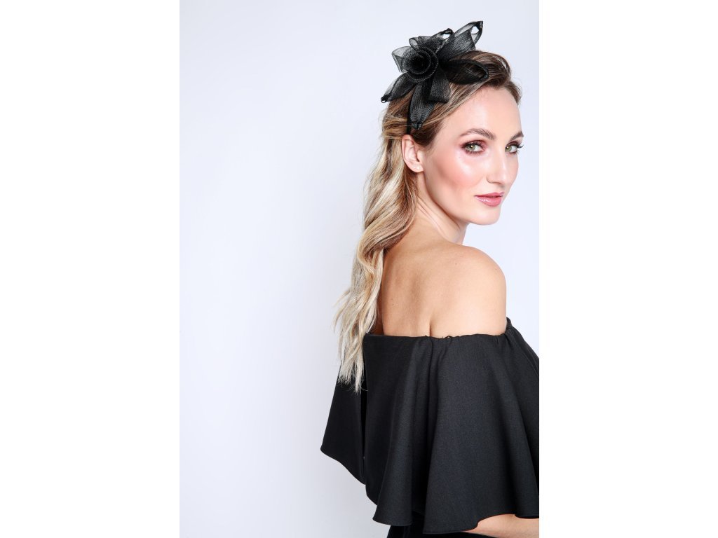 Lehké černé šaty Valentino se spadlými rameny a volánem spojují ženskou eleganci s nenuceným stylem. Ideální pro letní večery i městské procházky.